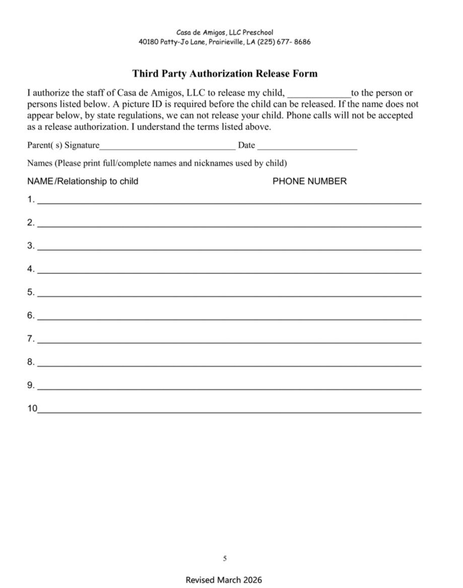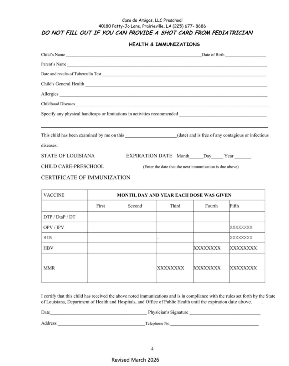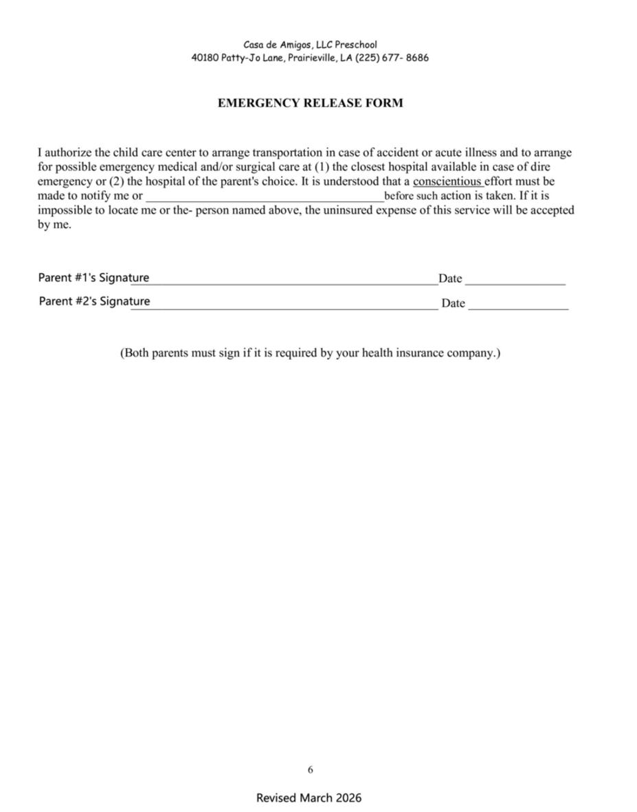 A $100 enrollment fee must accompany this registration packet in order to hold a position for your child at the facility.